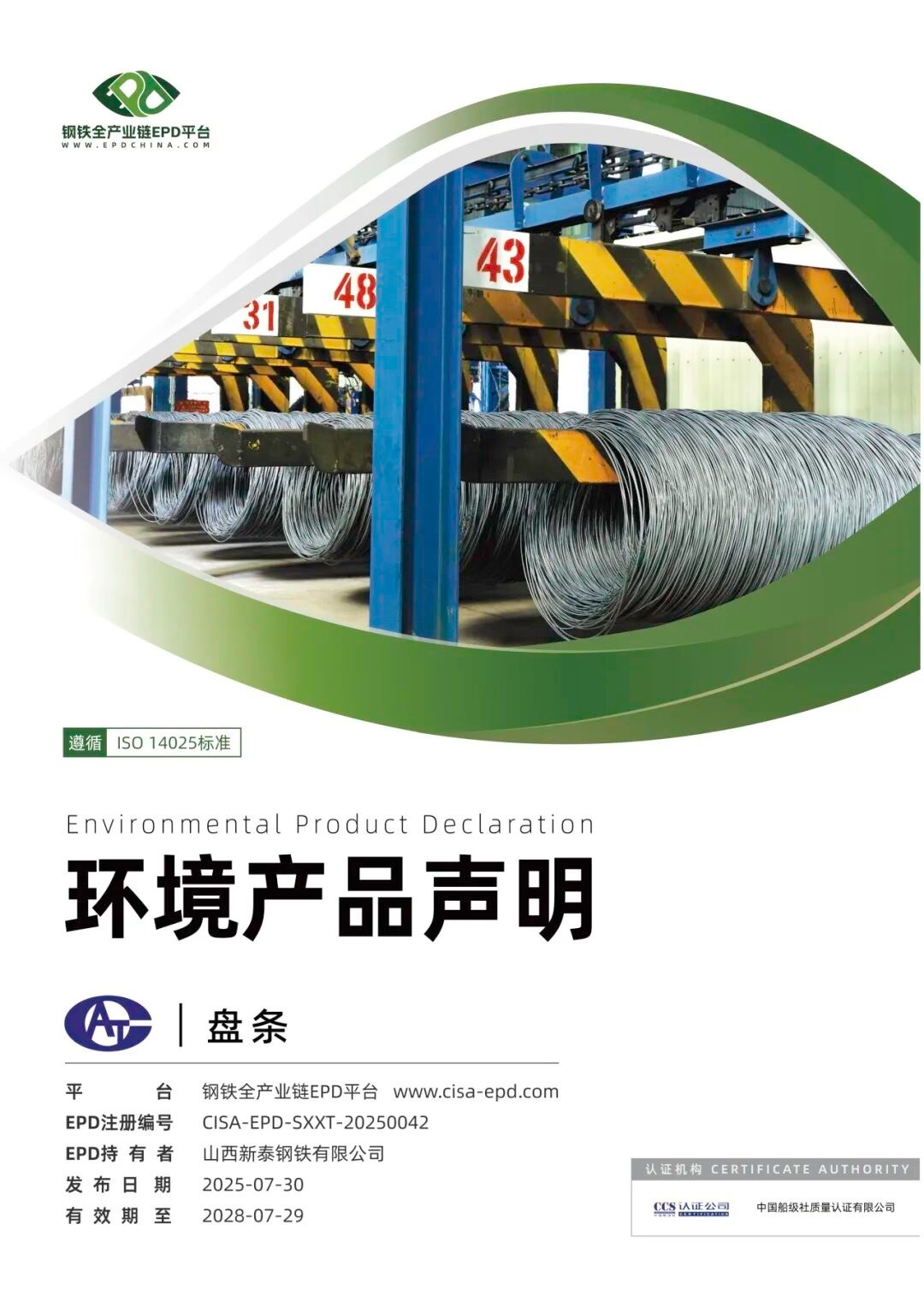 新泰鋼鐵環境產品聲明(EPD)成功發布